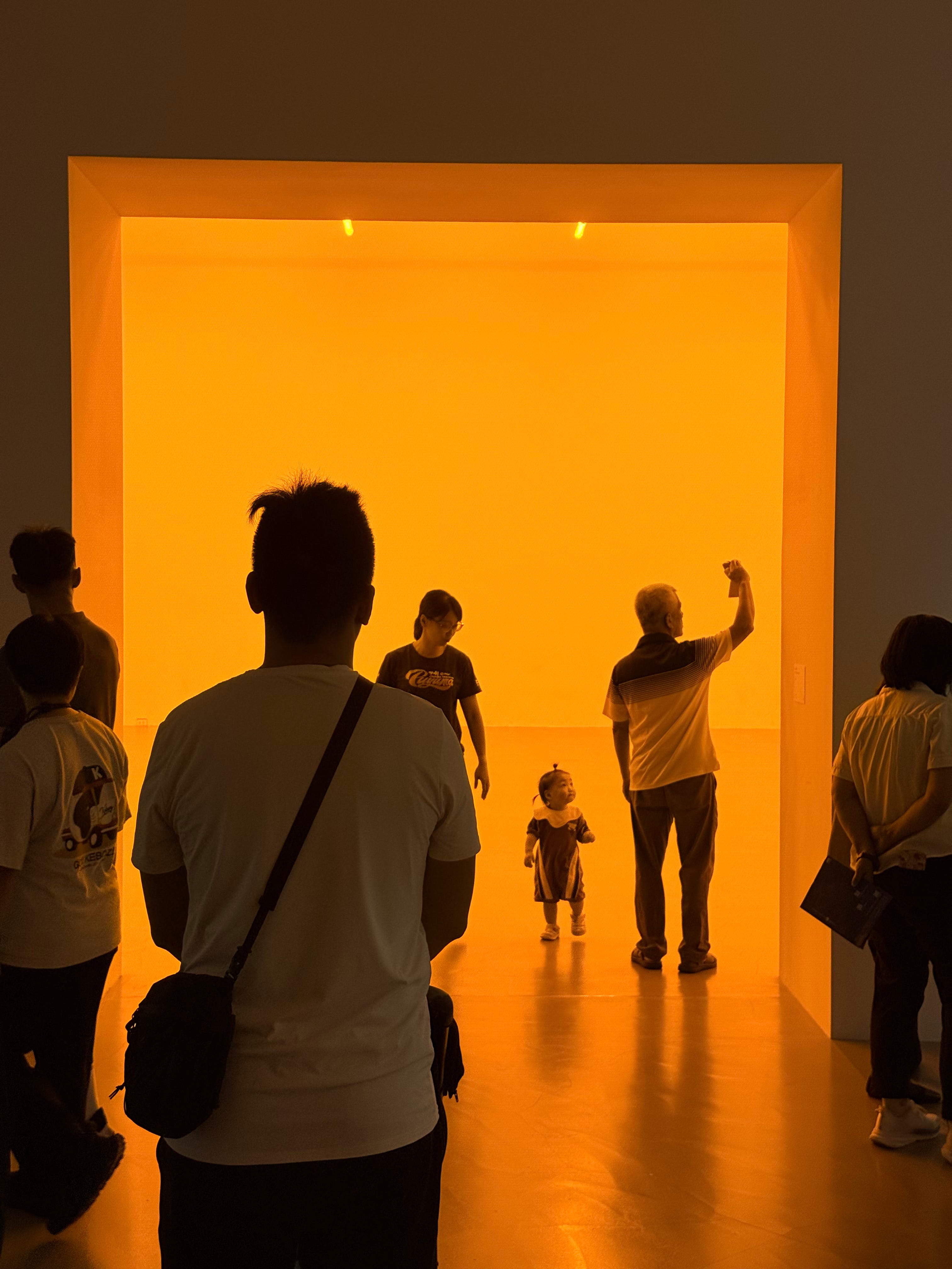 One such change was back in the museum in the exhibition by the Icelandic-Danish artist whose work was suddenly in Taiwan. In rooms pitch black, there were bits of light. More characters shaping each other.